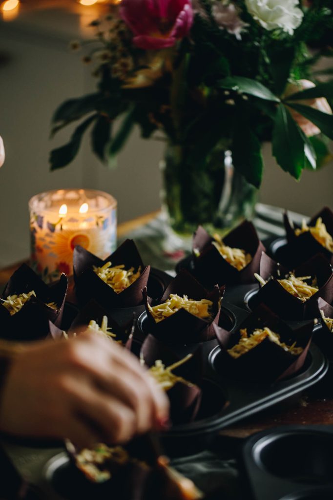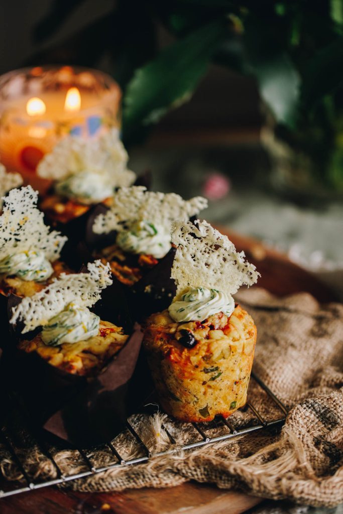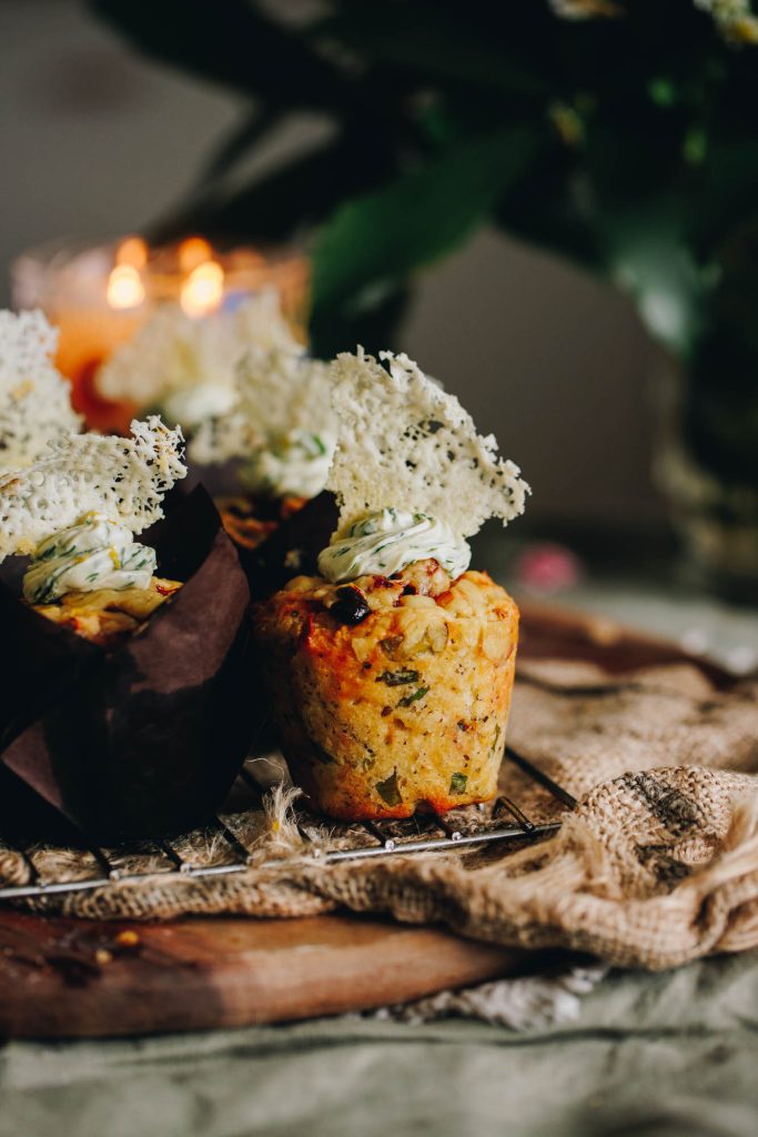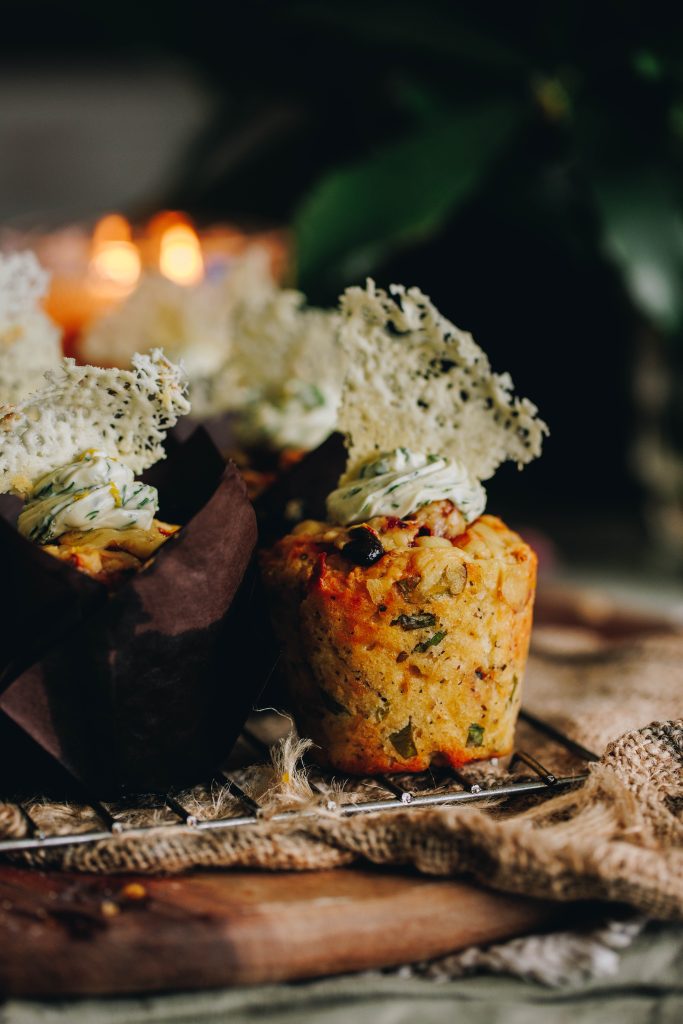 This recipe has been swirling around in my brain now for a couple of years and it is finally ready to be set free in to the world. It started as an image in my mind – a savoury muffin with a cream cheese and herb topping and a parmesan crip as a pōtae (hat) and it came out just as I had hoped. As with all of my recipes, you don’t have to decorate it. This mawhene mōkarakara (savoury muffin) can stand on its own, served warm from the oven with a little pata (butter). The flavours are so beautiful and are pefect for lunch boxes, a picnic or a morning tea when manuhiri (guests) come over. You can also decorate like I did with a simple cream cheese and herb topping and Parmesan Wafers.