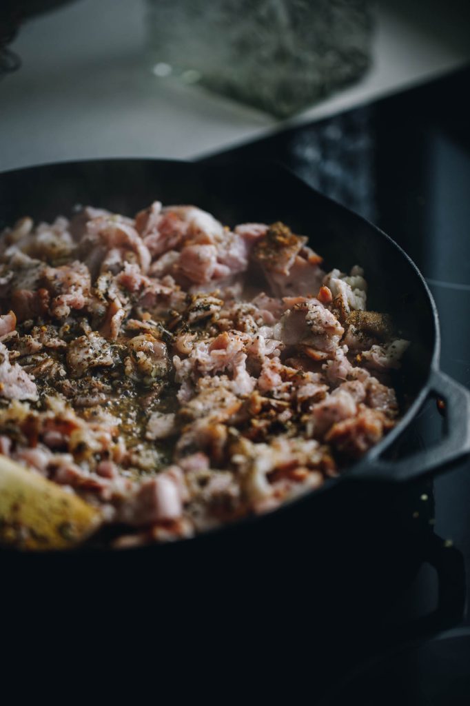Option 1 – Develop the flavour of the bacon by frying it first, I prefer this for the best flavour.