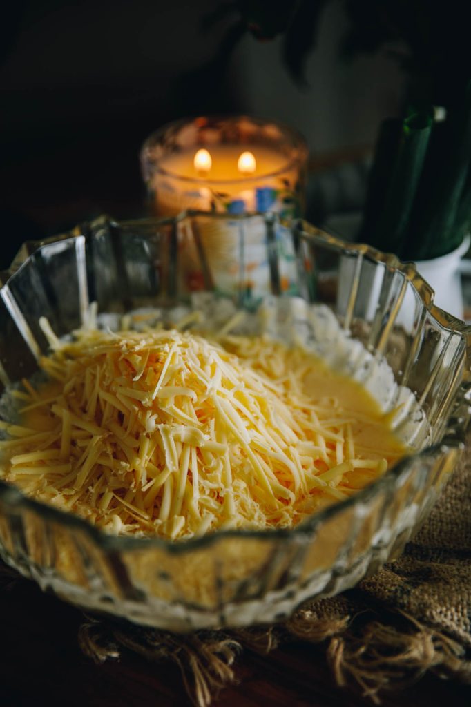 Grate the 200 g of tīhi (cheese) directly in to the egg mixture. Reserve a little bit of tīhi (cheese) for the tops of the muffin, if you want to.