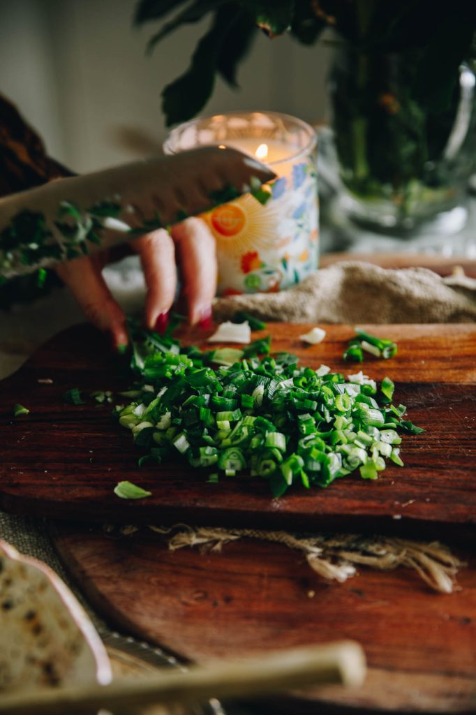 • Chop the aniana (onions) roughly and add it in, along with the ranunga pēkana (bacon mixture). Roughly mix it together.