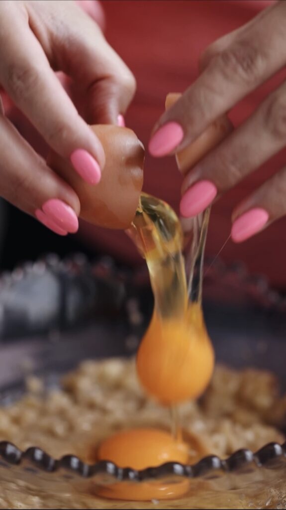 - Add both of the hēki (eggs) and the wanira (vanilla) to the maika kua penupenua (mashed bananas). Whisk it all together until smooth.