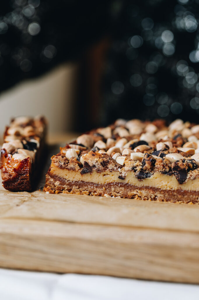 E hoa mā (friends), sometimes I want something sweet but not too sweet. Sweet with a hint of savoury and a touch of salt. This slice is exactly what hits all those notes for me. This caramel slice has half the caramel of a caramel slice. It also has almond butter (which can be replaced with any nut butters) in the base which adds a delicious savoury note. The delicious karamea (caramel) goes on to the base and is finishes with a crumb made from the base, blanched aramona (almonds) and a tiakarete parauri (dark chocolate). He aha te hua? What the result? Perfection! A divine combination of all things delicious. Easy to whip up and perfect for every event!