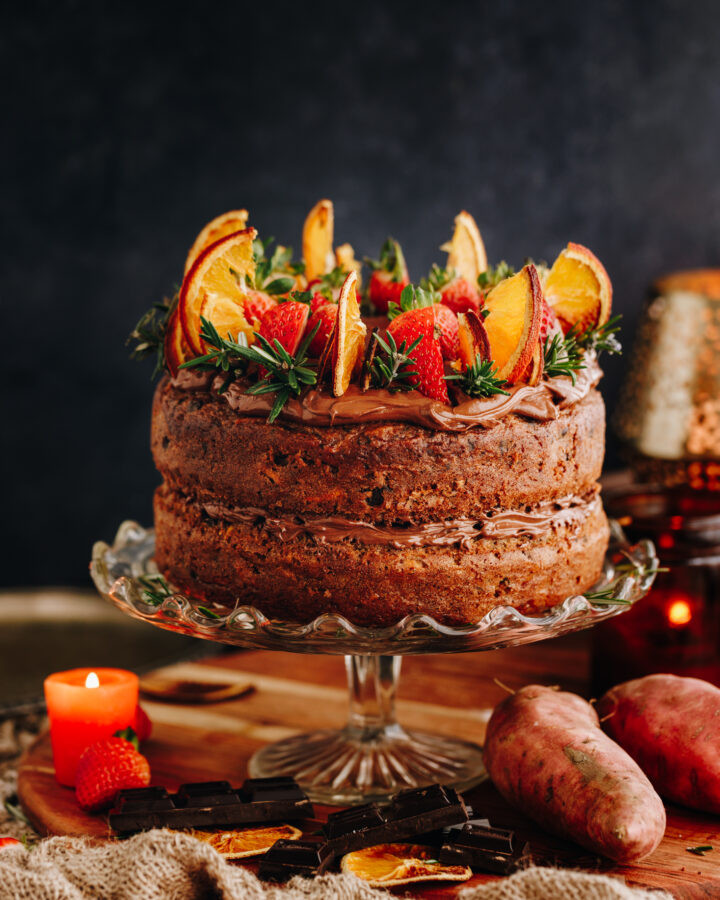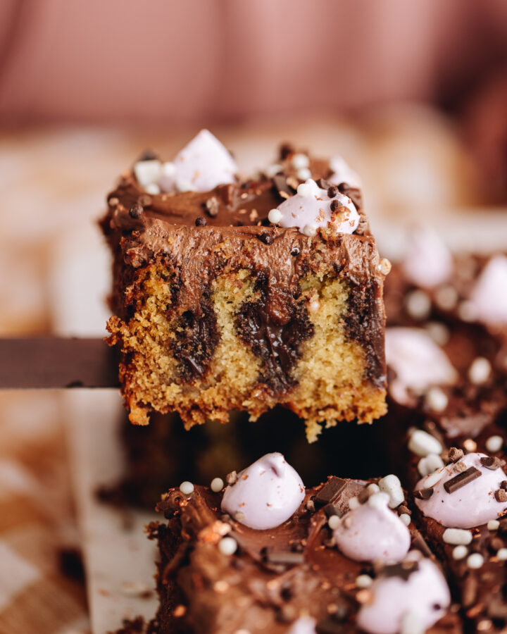 Vanilla, Chocolate and Peanut Butter Poke Cake