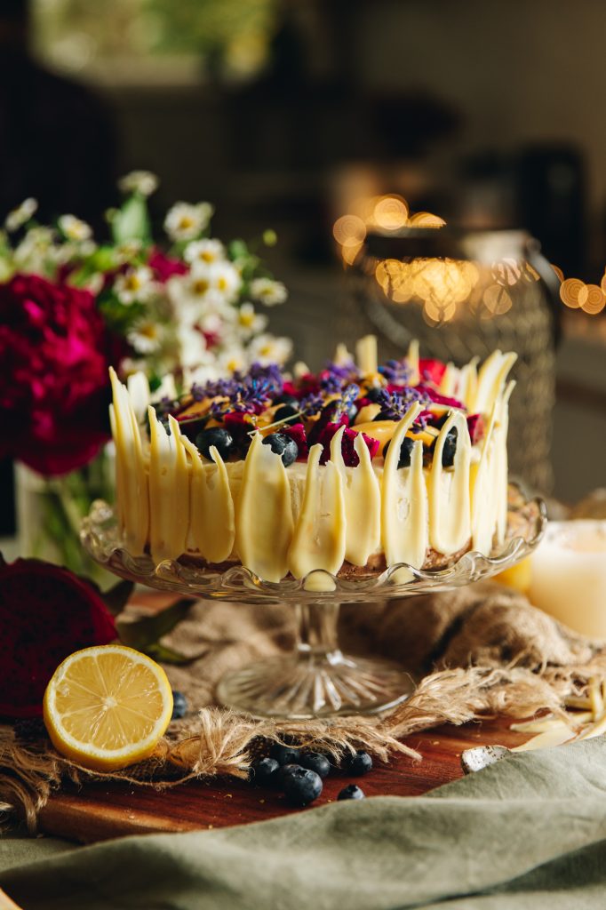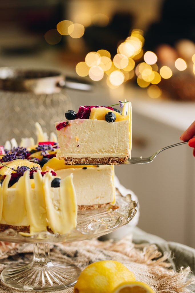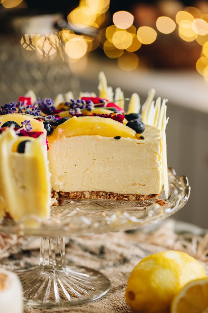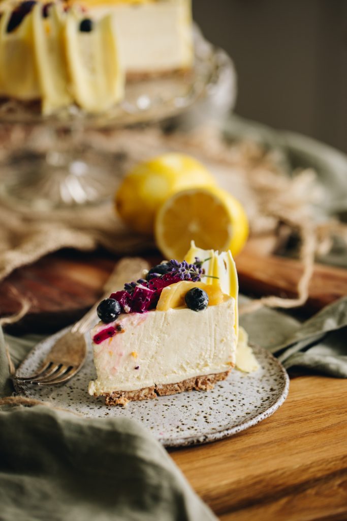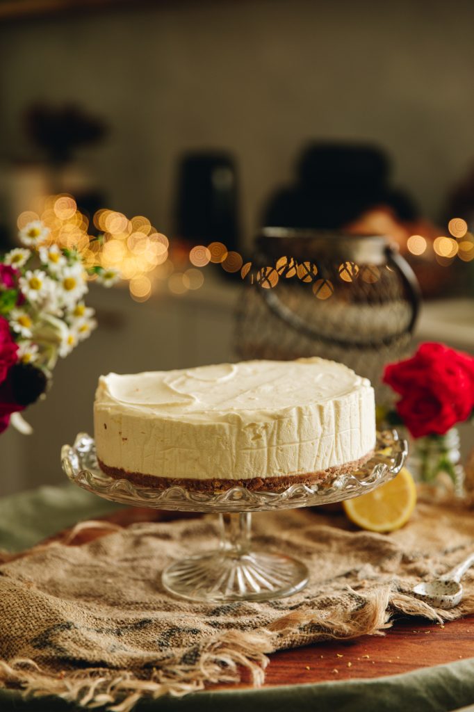 Chilled Lemon and White Chocolate Cheesecake – Keke Tīhi Rēmana me te Tiakarete Mā