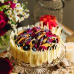- 1 quantity raupua tiakarete mā (white chocolate petals)