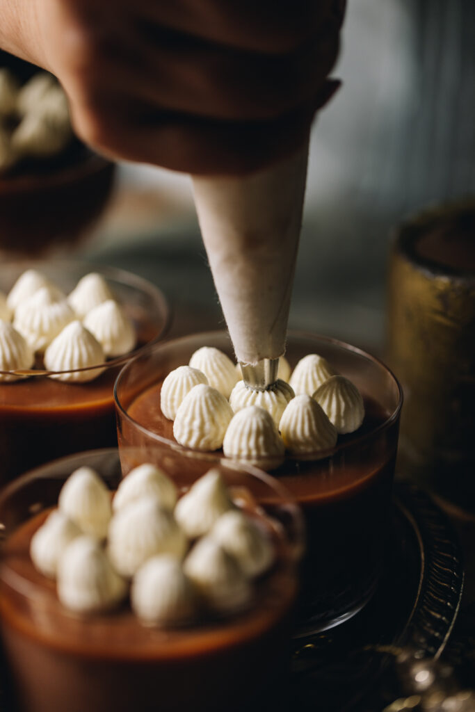 Chocolate Mousse and Salted Caramel Dessert – Purini Tiakarete me Te Karamea Tote.
