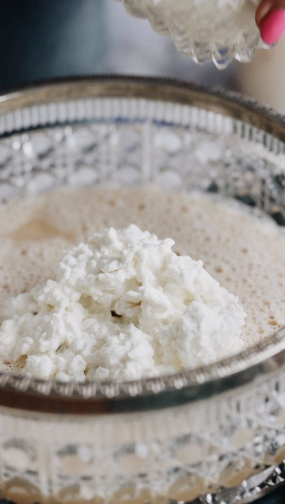 - Using a fork, give the tīhi pahī (cottage cheese) a really good mash with a fork until smooth. (Mine was a bit too lumpy in the video).Add it to the yeast mixture and stir it through.