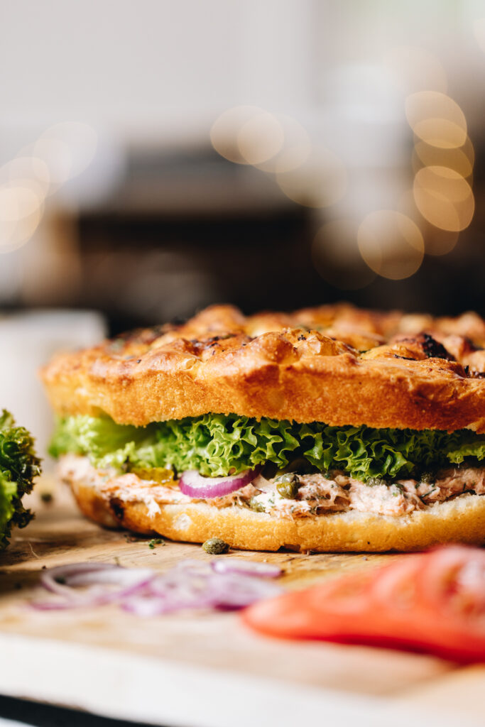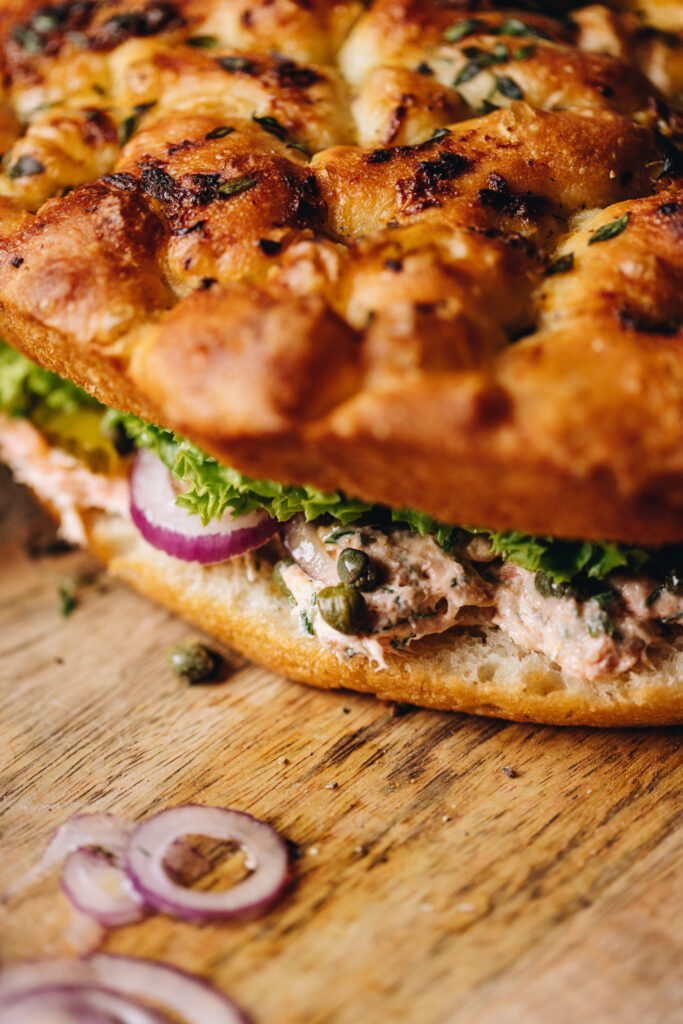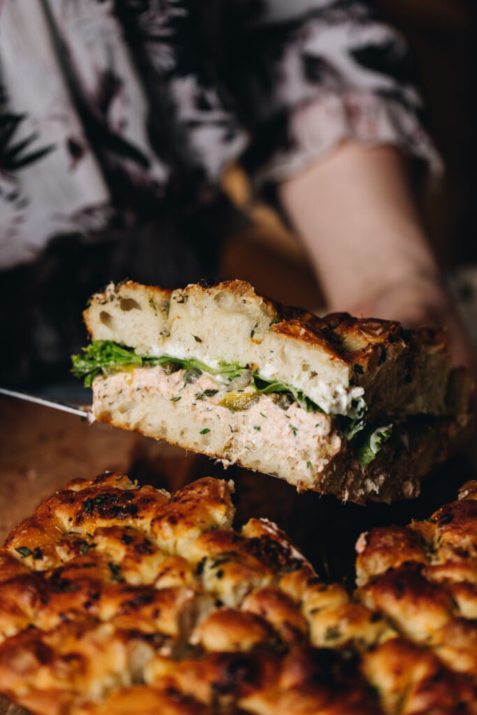 Focaccia Sandwich with Salmon Spread – Hanawiti Pāraoa Pokapoka Me Te Kīnaki Hāmana