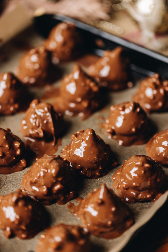 - Place each one back on to the tray with baking paper, with a little bit of space between each one.