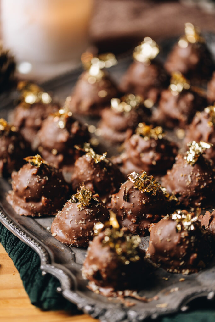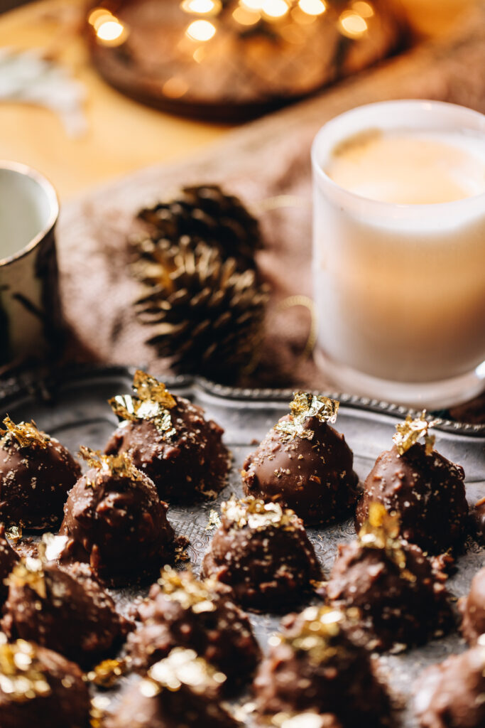 - Set in the fridge for an hour and if you want a touch of pizazz, add some rau koura (gold leaf) to each one.