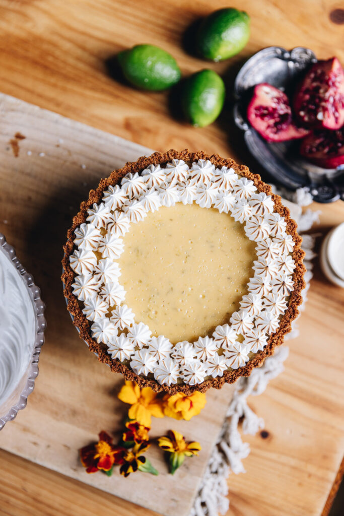 - The meringue is now ready to decorate the top of my key lime pie or any pie or cake you may want to decorate. If you want to decorate the top of your pie and use the rest for making meringue shards, check out this recipe.