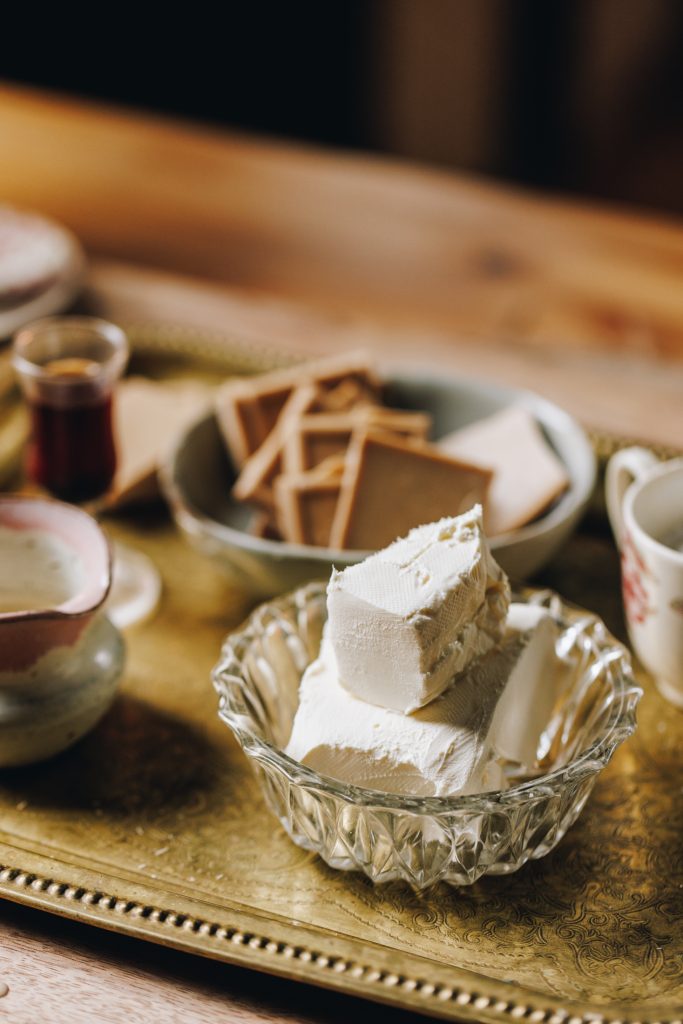 - Add the pata (butter), marahihi (molasses), huka hāura (brown sugar), huka one (caster sugar) and tote (salt) to a pan. Finely chop the rare tinitia (crystallised ginger) and add it in.