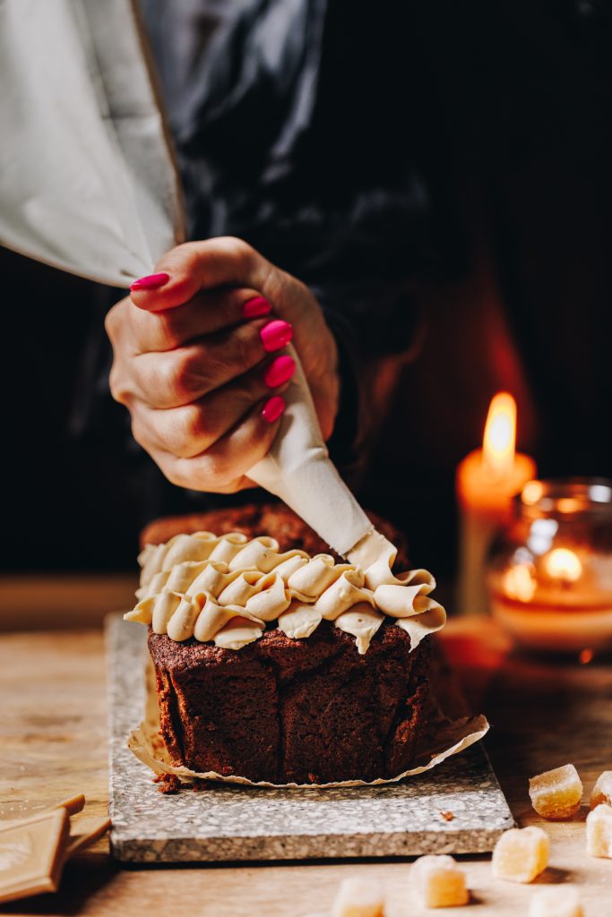 - If you want to add the cream cheese icing on top, head to this recipe – cream cheese and white chocolate frosting. Finish with a sprinkle over finely chopped rare tinitia (crystallised ginger) and rau koura (gold leaf).