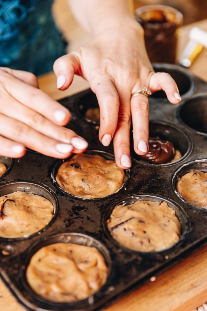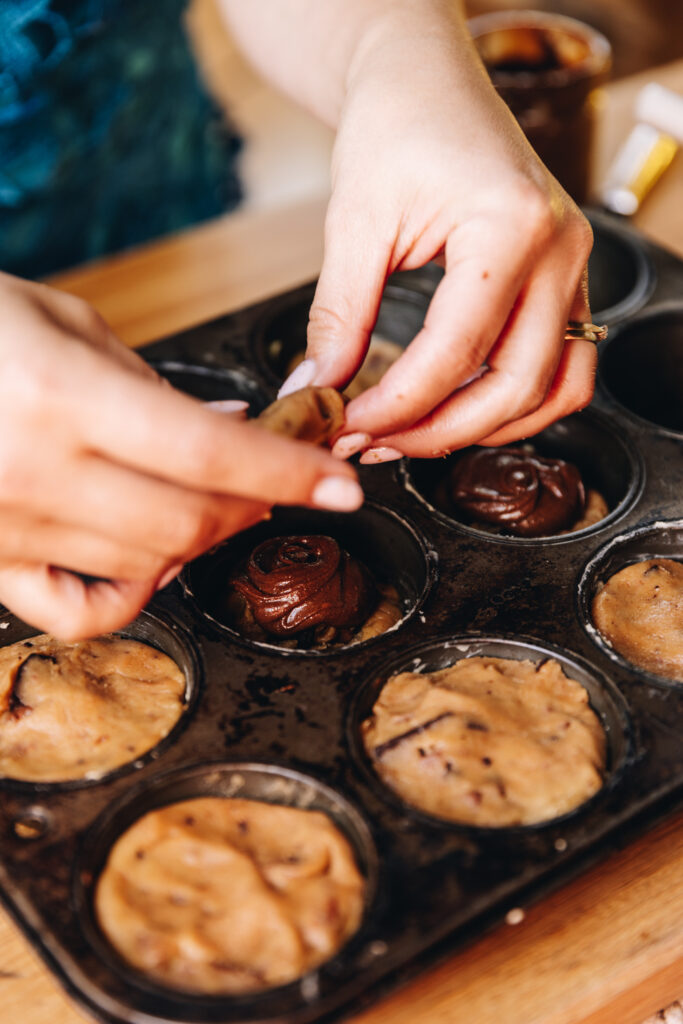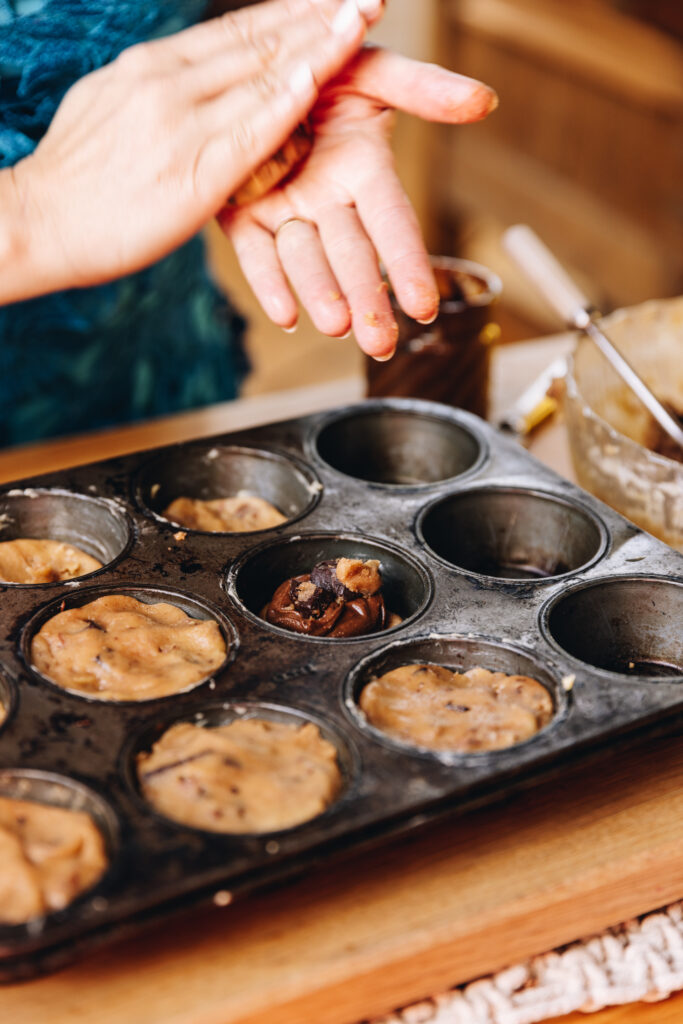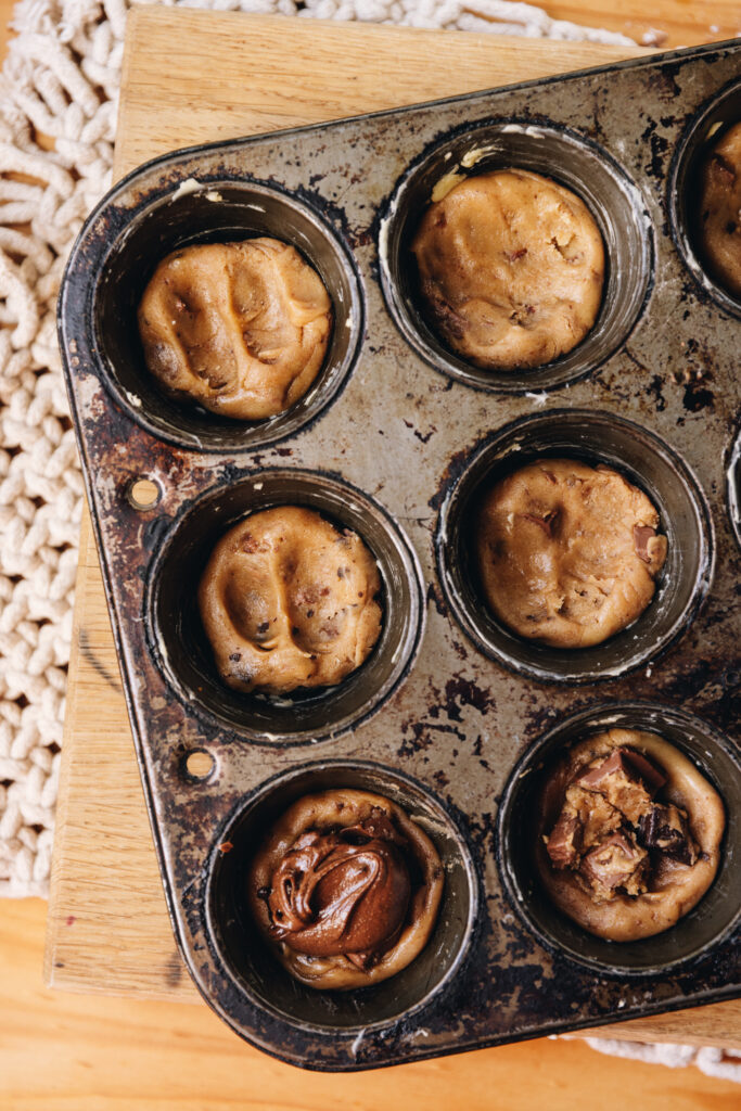 E hoa mā – friends, if you have made my brown butter chocolate chip cookies then you are going to love this recipe! You create the brown butter chocolate dough just like the biscuits but we press the dough in to muffin tins, add some chocolate and hazelnut spread (if that is your thing), top it with more dough and bake it. The result is gooey, delicious eating. If you really want to bling them out or turn them in to a gift, drizzle them with a little tiakarete and top them with a forero rocher.