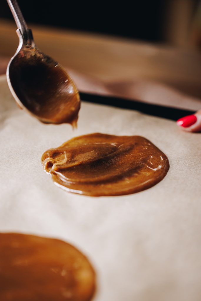 - Using a measuring spoon, take a level tablespoon of mixture and dollop on to the prepared tray. Repeat this process, making four – six pihikete (biscuits) on each tray, with plenty of room between them. They spread a lot in the oven, so less is better. Spread each of the blobs of mixture in to a 10 cm circle.
