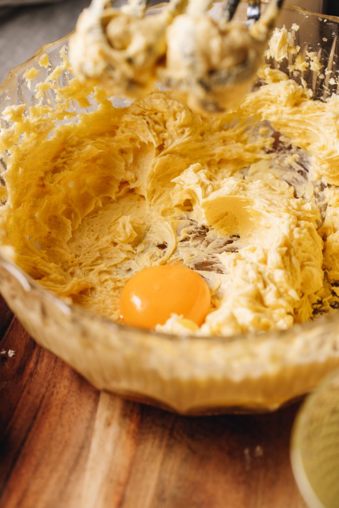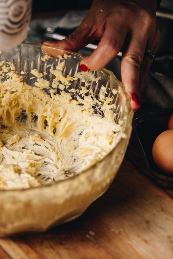 - Add the pata kūteretere (softened butter), wanira (vanilla) and tote (salt) to the ranunga huka (sugar mixture). Whip it on high for 4-5 minutes until fluffy.
