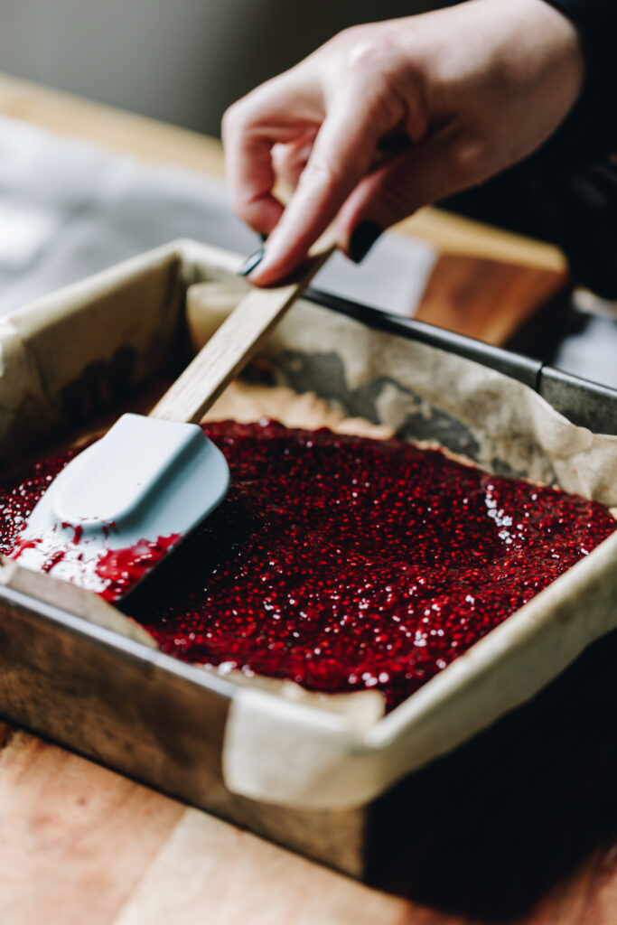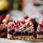 Absolutely delicious! I didn’t have raspberries so ended up roasting some plums and making a chia seed jam from them. The base is so moreish – not dry like a lot of slice bases.
