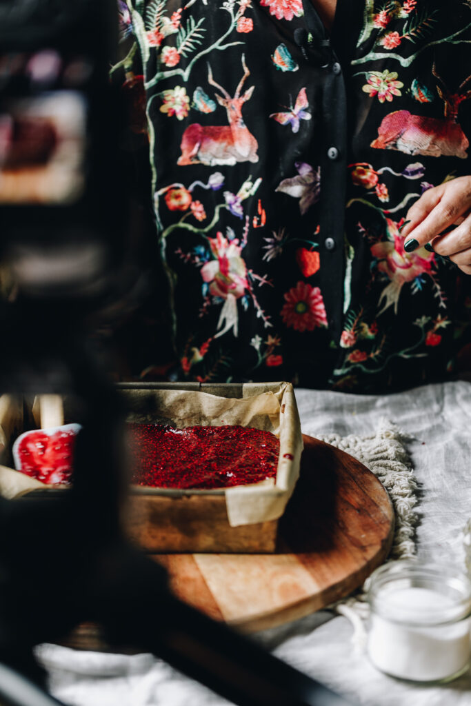 The Māori translation for this recipe is Keke Rahipere me te Kokonati which means Raspberry and Coconut Slice because I have no idea who Louise is. How come she gets to take the glory for one of the most divine slices of all time. Can this one be called Naomi Slice? I’ll let you be the judge. I digress…this recipe is from the Whānaukai Cookbook and it will forever be one of my favourites. Buttery shortcake base with a touch of lemon zest, homemade speedy raspberry chia jam, topped with a luscious coconut Swiss meringue. Wow on so many levels!