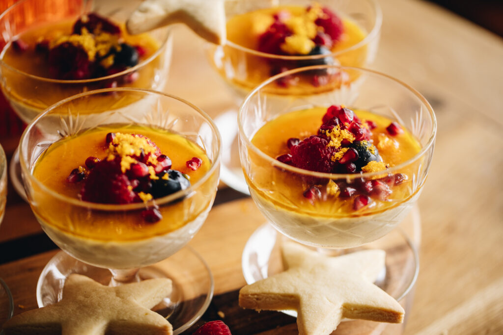 Panna Cotta with Orange and Honey Syrup – Kirīmi kua tunua me te Waihuka Ārani me te Mīere.