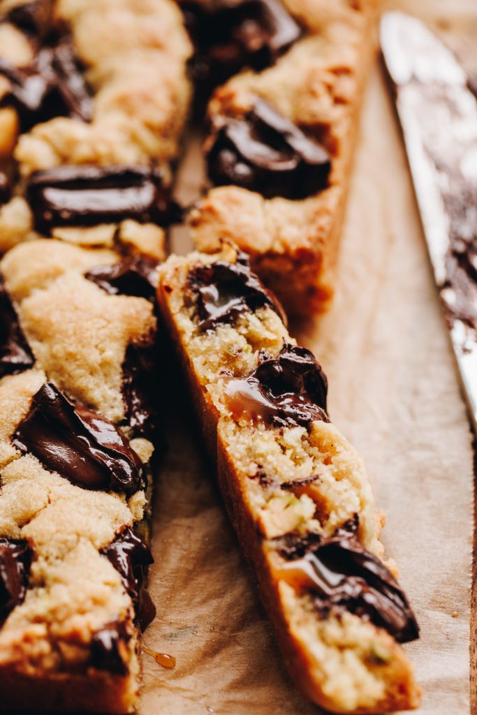 Pistachio, Coconut and Chocolate Cookie Slice – Keke Papatahi Pihikete Pihitāhio, Kokonati me te Tiakarete