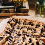 A few months ago I shared my Pistachio and Salted Carmel Chocolate Cookies, they are so delicious and easy to make. However, if you are like my daughter Bella, sometimes you want an even easier option for baking. Make the biscuit dough, press it in to a 20 cm slice tin, bake for 20 minutes and bam, you have yourself delicious cookie slice. I use a tiakarete parauri karamea tote (salted caramel dark chocolate) in this recipe but feel free to swap out the flavours for what you love. Kia tunu tātou – let’s bake!