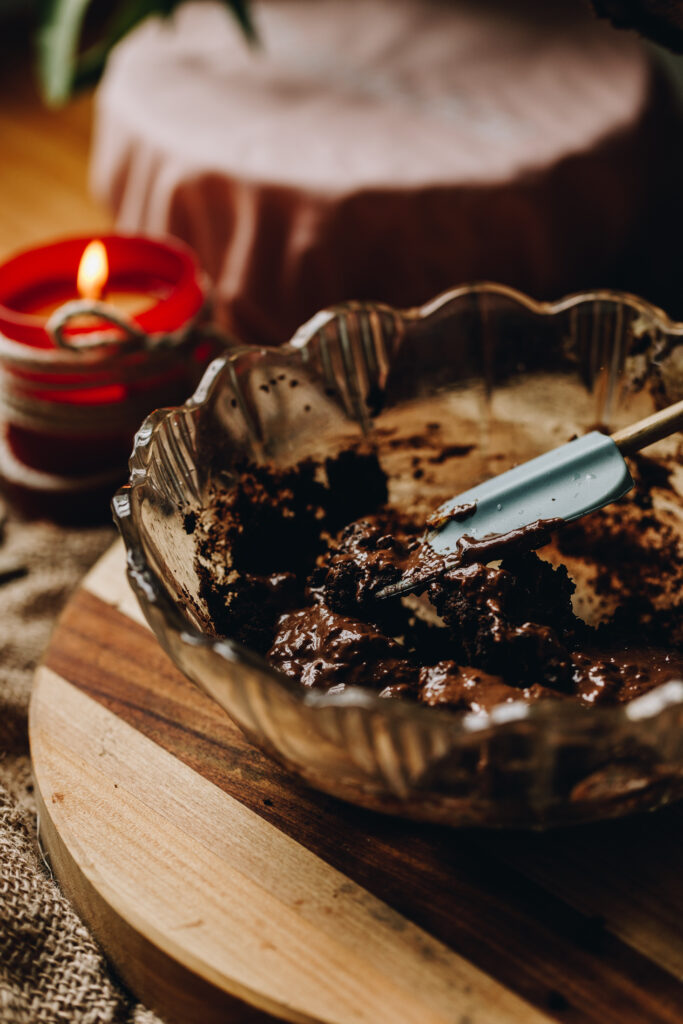 • Fold through the tiakarete hānatai kua rewaina (melted hazelnut chocolate) and it is ready.