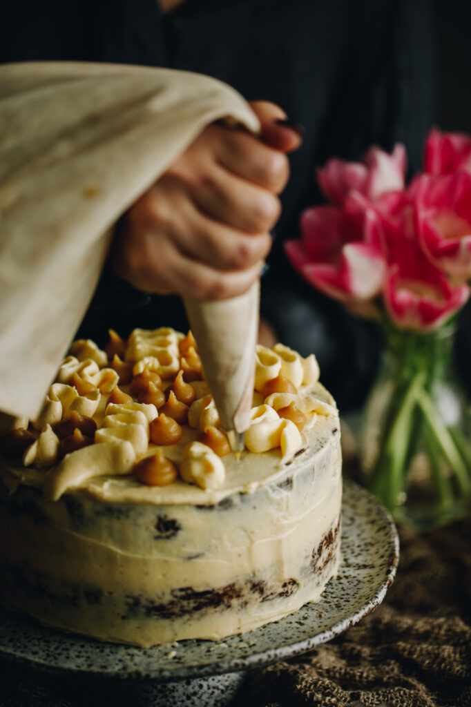 I made this for my grandfather’s 77th birthday – sweet, moist, complex, and balanced by the delicious easy caramel and cream cheese. Seriously good and a real hit with everyone <3