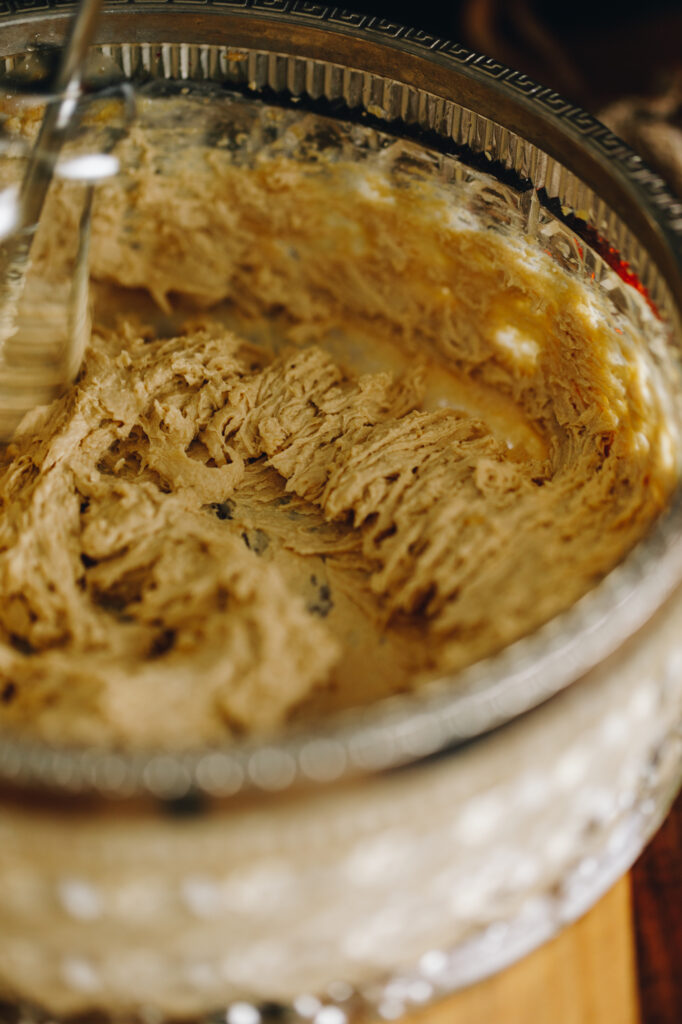 • Add the pata kūteretere (softened butter), huka hāura (brown sugar) and iho hūperei (vanilla essence) to a large bowl. Whip on high for five minutes until the butter has changed to a light pale colour.