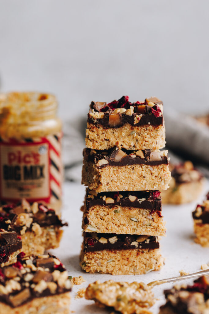 I have a confession! Before making this recipe I did not like fudge at all. Every piece of fudge that I had tasted up to this point in my life I did not like. The sweetness level for me was just too much! So, when I created this recipe for Pic’s peanut butter last year, my focus was for this fudge to have the perfect balance of sweet, a touch of salty and super delicious. You know what? I think I did it! My fudge has a base of deeply toasted coconut which gives the fudge the most beautiful toasty flavour. Then we create a homemade caramel that consists of melting a few ingredients for 5 minutes. We then hit it with your favourite nut butter, fold it all together and set it in the fridge. Then, we hit that gloriousness with a simple chocolate ganache and some chopped up caramel lollies. Have I convinced you yet?