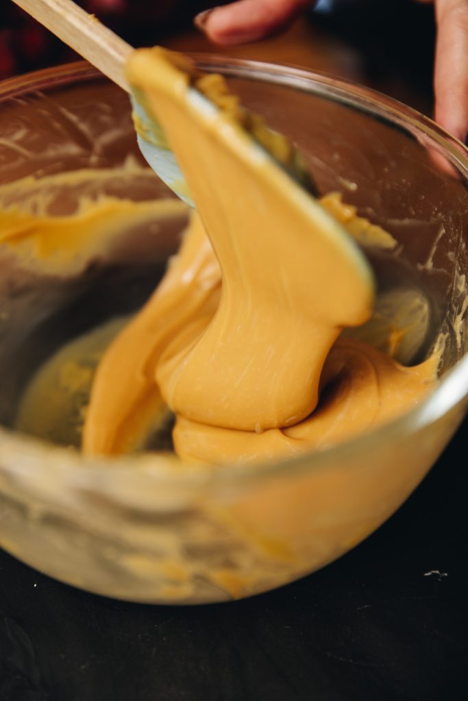 When you melt the tiakarete mā ( white chocolate), do this gently in a bowl that sits over a pot of barely simmering water or in the microwave. When the chocolate is mostly melted, remove the bowl from the heat and stir gently until it is all melted. This is a cheats way to temper. If you want to temper the chocolate like the pro’s do, google it as I am all about the cheat in this department.